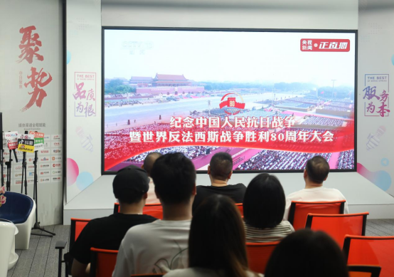 2025年9月3日上午,盛世經典營銷策劃公司的部分員工齊聚會議室,共同觀看了一場氣勢恢宏的閱兵式。屏幕中,徒步方隊步伐鏗鏘,裝備方隊鐵流滾滾,空中梯隊呼嘯蒼穹;會議室內,掌聲陣陣,心潮澎湃,自豪與感動在每個人心中激蕩。